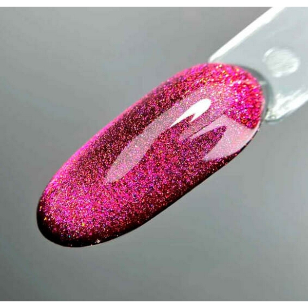 Saga Wild Cat №04 (темний рожевий, котяче око) 9 мл — гель-лак з нової колекції з ефектом котячого ока, що зачаровує. При покритті потрібно використовувати спеціальний магніт для появи відблиску будь-якої форми та глибини. Гель-лак має середню консистенцію, тому краще виглядає на темній підкладці, але також можна використовувати без підкладки. Створити цікавий та красивий дизайн легко, і в цьому допоможе цей гель-лак.